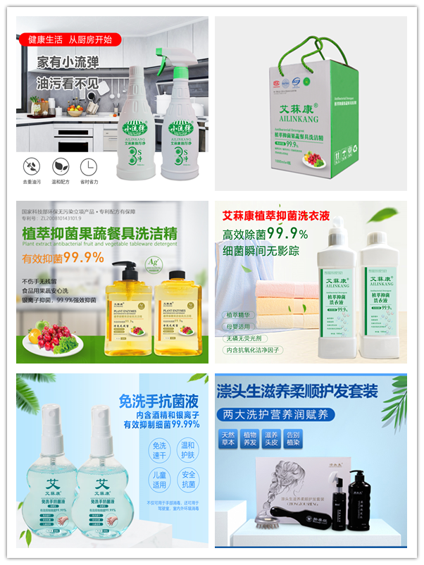 富達日化“植萃抑菌系列洗衣液洗潔精”“漴頭生滋養柔順護發套裝”“艾霖康免洗手抗菌液”“小流彈廚房油污清理劑”四大系列產品。產品升級版首發,從洗護到清潔,構建全系列產品體系。標志著富達日化產品品牌升級正式啟動!
